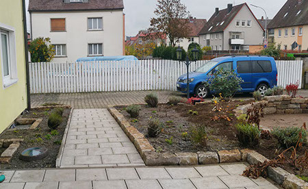 Alter Pflanzenbestand wurde aber auch erhalten und fand zum Teil im hinteren Bereich des Grundstückes (siehe unten) Verwendung.