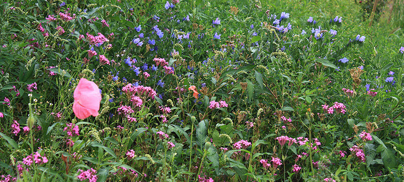 Dann will ich es wissen: Ist die Ansaat gelungen? Ich fahre zu Höfler und bin begeistert über die erste Farbenpracht: Wildblumen sind immer eine Reise wert. Auch erste Tiere – wie den Laubfrosch – habe ich schon entdeckt. Feldlerche, Kiebitz und Rebhuhn haben neue Lebensräume bekommen. Wo sollen sie in dieser Region Futter finden, wenn nicht in Höflers Blumenwiesen und Saumeinsaaten? Und wohin, bitteschön, soll sonst ein Bläuling fliegen wenn nicht in diese Blumenpracht?