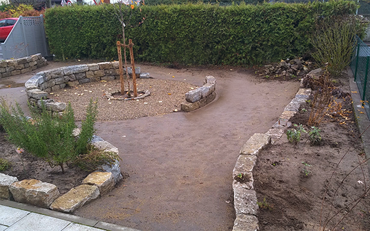 Alter Pflanzenbestand wurde aber auch erhalten und fand zum Teil im hinteren Bereich des Grundstückes (siehe unten) Verwendung.