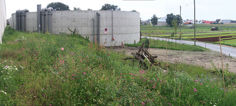 Wie eine Oase schmiegt sich der Saum an die Westseite des Gewächshauses. Hier können Feldlerche, Rebhuhn und Kiebitz ihre Nester bauen und finden reichlich Insektennahrung.