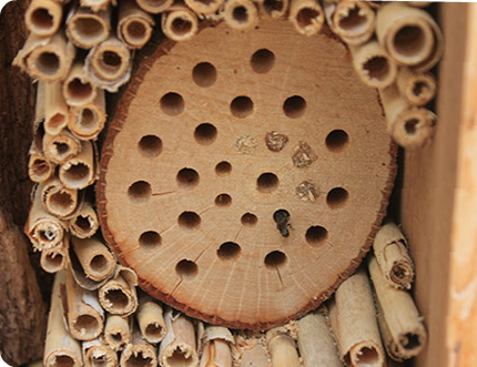 Totholz, Steinhaufen und Nisthilfen sorgen für vielfältigen Lebensraum aller Art und fördern Biodiversität.